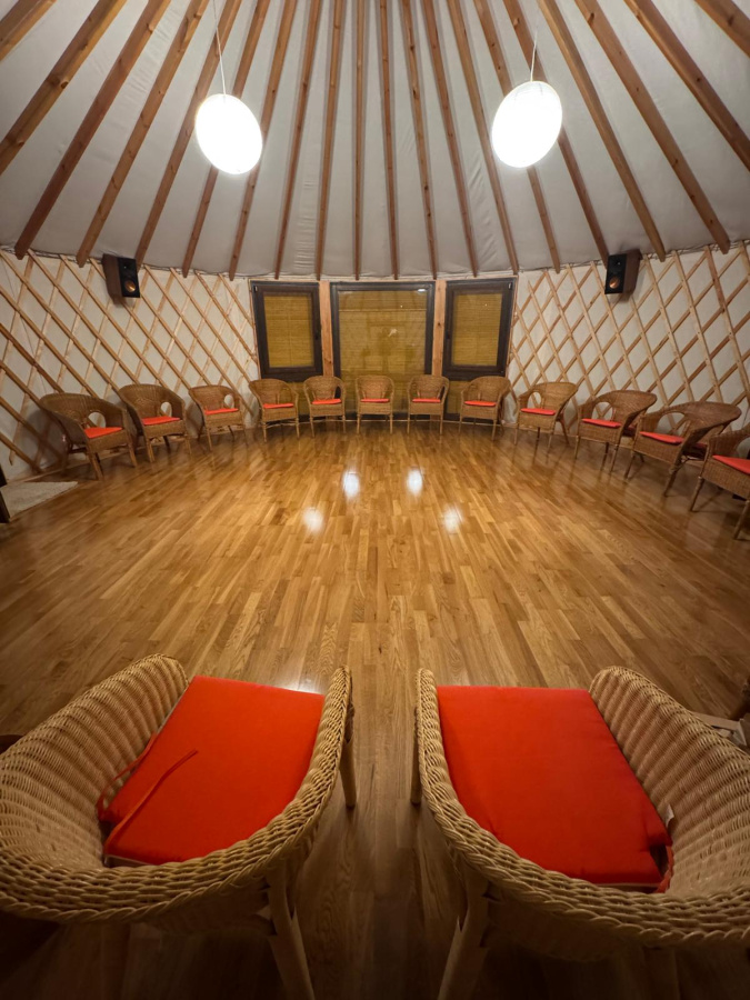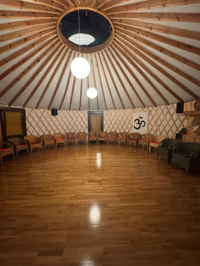 La Yurta, donde el círculo nos recuerda que todo vuelve al centro. ⁠Un espacio que abraza, contiene, crea y expande. Un espacio vivo para el crecimiento compartido. Un escenario circular para aprendizajes conscientes. Espacio de creación, conciencia y transformación. La Yurta creativa: Donde el arte y el alma dialogan. La yurta creativa: donde la creatividad se convierte en conciencia. Geometría que sostiene procesos humanos. ⁠El círculo donde el arte, la memoria y el alma se encuentran.